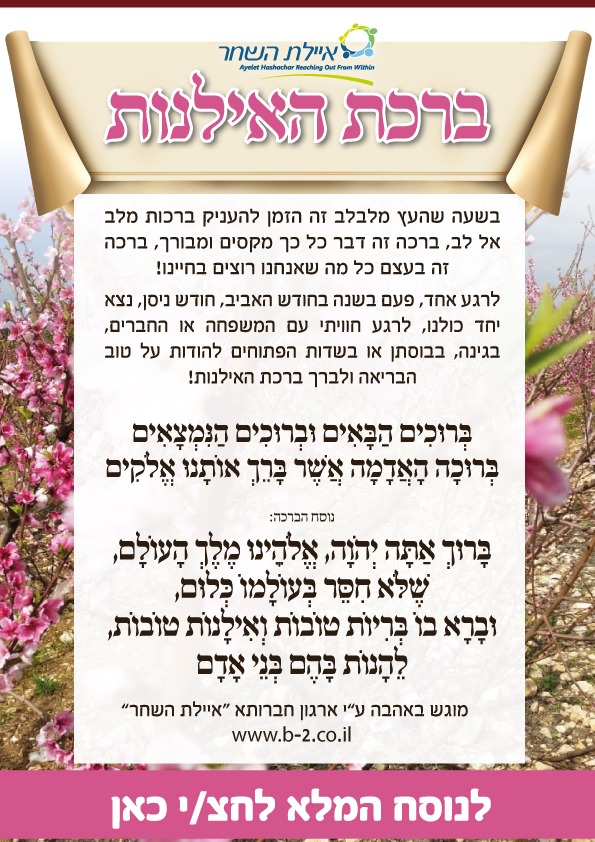 יהי רצון מלפניך ה' אלהינו ואלהי אבותינו, שתעלינו בשמחה לארצנו, ותטענו בגבולנו, ושם נקיים מצות תרומות ומעשרות וכל מצות התלויות בארץ אשר הנחלת לאבותינו, היא ארץ זבת חלב ודבש, ארץ נחלי מים עינות ותהומות יוצאים בבקעה ובהר, ארץ חיטה ושעורה וגפן ותאנה ורימון, ארץ זית שמן ודבש, כאשר צויתנו בתורתך על ידי משה עבדך.